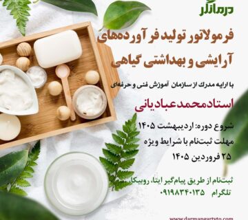 دوره «فرمولاسیون تولید فرآوردههای آرایشی بهداشتی گیاهی» برگزار میشود/ شرایط ویژه تا 25 فروردین 1405Modir1404-12-03به گزارش درمانگر ، دوره «فرمولاسیون تولید فرآوردههای آرایشی بهداشتی گیاهی» با همکاری آموزشگاه درمانگر و با حضور استاد محمد ... ادامه مطلب