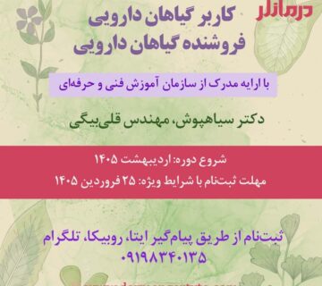 دوره «فروشنده گیاهان دارویی» برگزار میشود/ شرایط ویژه ثبتنام تا 25 فروردین 1405Modir1404-12-03به گزارش درمانگر، دوره فروشنده گیاهان دارویی به زودی با همکاری آموزشگاه درمانگر برگزار میشود. فروشنده گیاهان دارویی شغل و ... ادامه مطلب